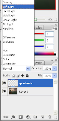mudarei a blend da camada do gradiente para Luz Suave (Soft Light)